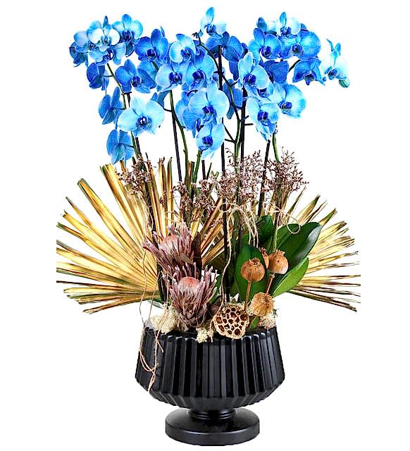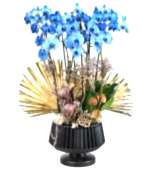 Saksı içerisine özel orkide toprağı ile birlikte 6 dal mavi orkide kullandık. Orkideler köklerinde su depolayan bitkilerdir. Bu yüzden haftada iki kez püskürtme yöntemiyle su verilmesi ya da köklerinin suyun altında tutulması kafidir. Ayrıca orkideler ışığı ve gece esintisini sever. Yaz aylarında özellikle geceleri açık bir pencere önünde tutulması çiçeklenme oranını arttırır. Çiçekleri tamamen döküldüğünde bir sonraki çiçeklenme dönemine kadar serin bir ortamda muhafaza edilmesi kafidir.