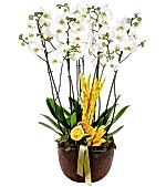 Dekoratif Saksıda 6 Dal White Orkide