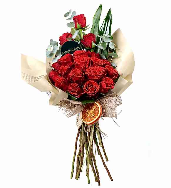 Kırmızı Aşk Buketi Premium Kırmızı Güller ile tasarlanmıştır.