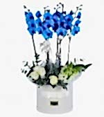 Kutuda Mavi Orkide Beyaz Güller