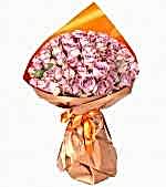59 adet lila renk güllerden oluşan premium çiçek buketi